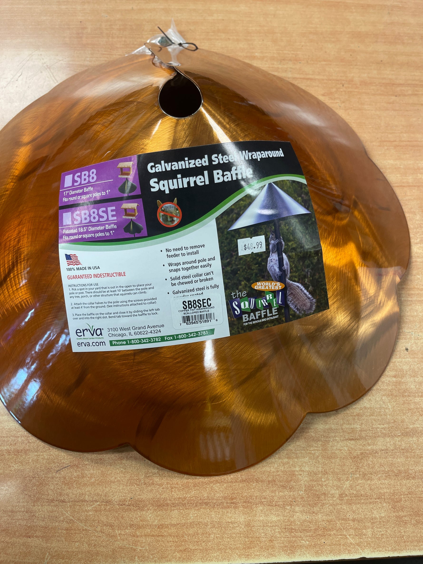 Galvanized, steel wraparound, squirrel baffle with a copper tent