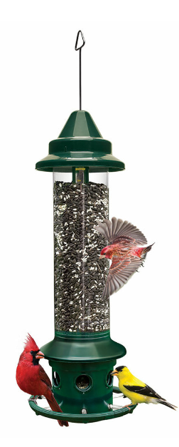 You can locate this bird feeder anywhere and be squirrel free. Position it to get great close-up views of your favorite birds. Hang your feeder over a window, in a tree, on a deck, a fence, in your garden, on the side of your house, from a rain trough or over sliding doors. Use brackets, extension hooks and tree hooks to hang your feeder at the recommended clearance. Hooks and brackets are available at birding stores, garden centers and hardware supply stores. Your feeder prevents squirrels from eating expensive seed, scaring the birds and damaging your feeder. Enjoy being free of squirrel problems, but please remember, squirrels also need to eat. For the price of a few peanuts, or inexpensive cracked corn, squirrels will be happy to entertain.