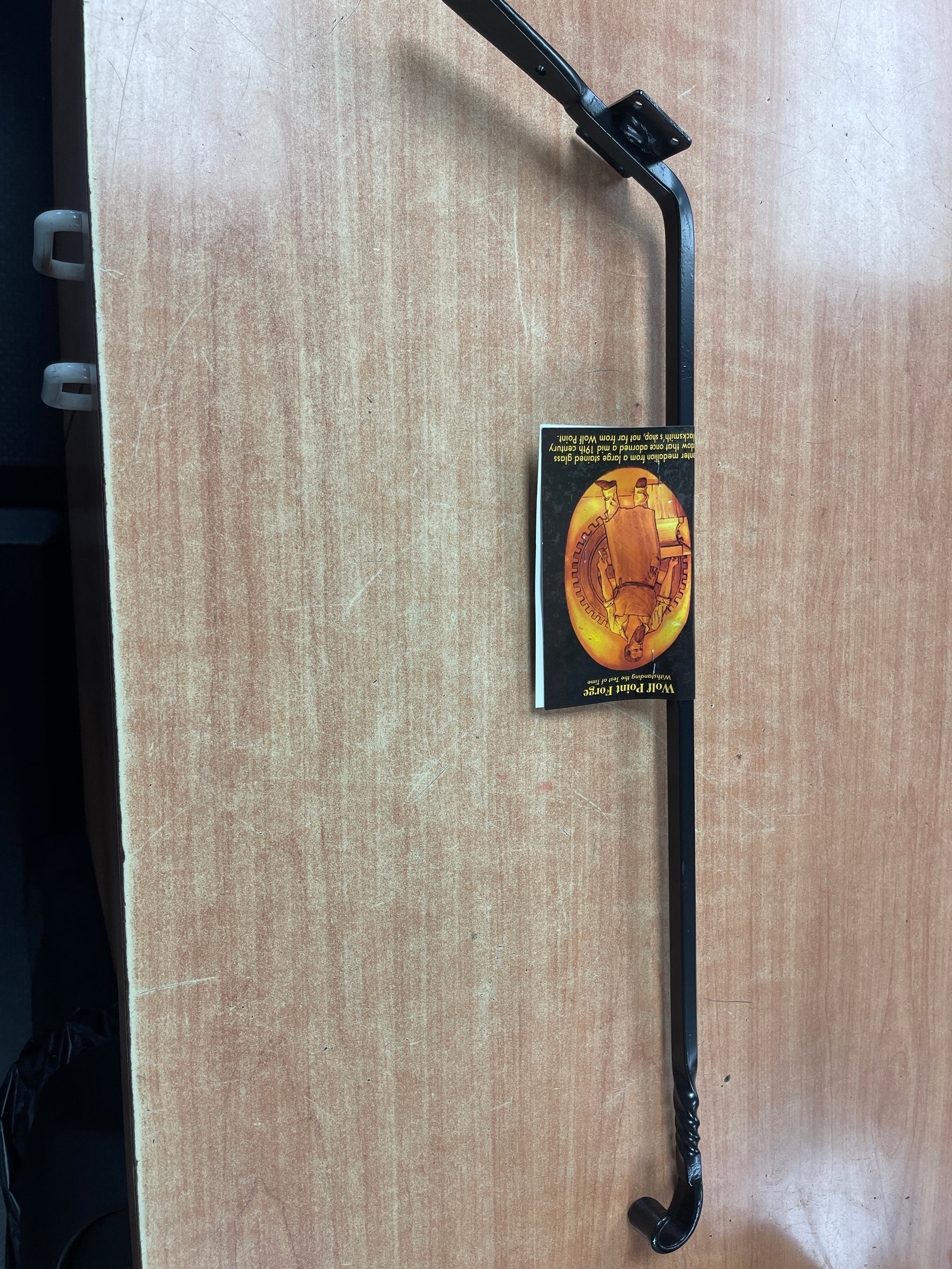 This hand forged 20 inch long wall hanger can mount to any wall tree fence, etc
